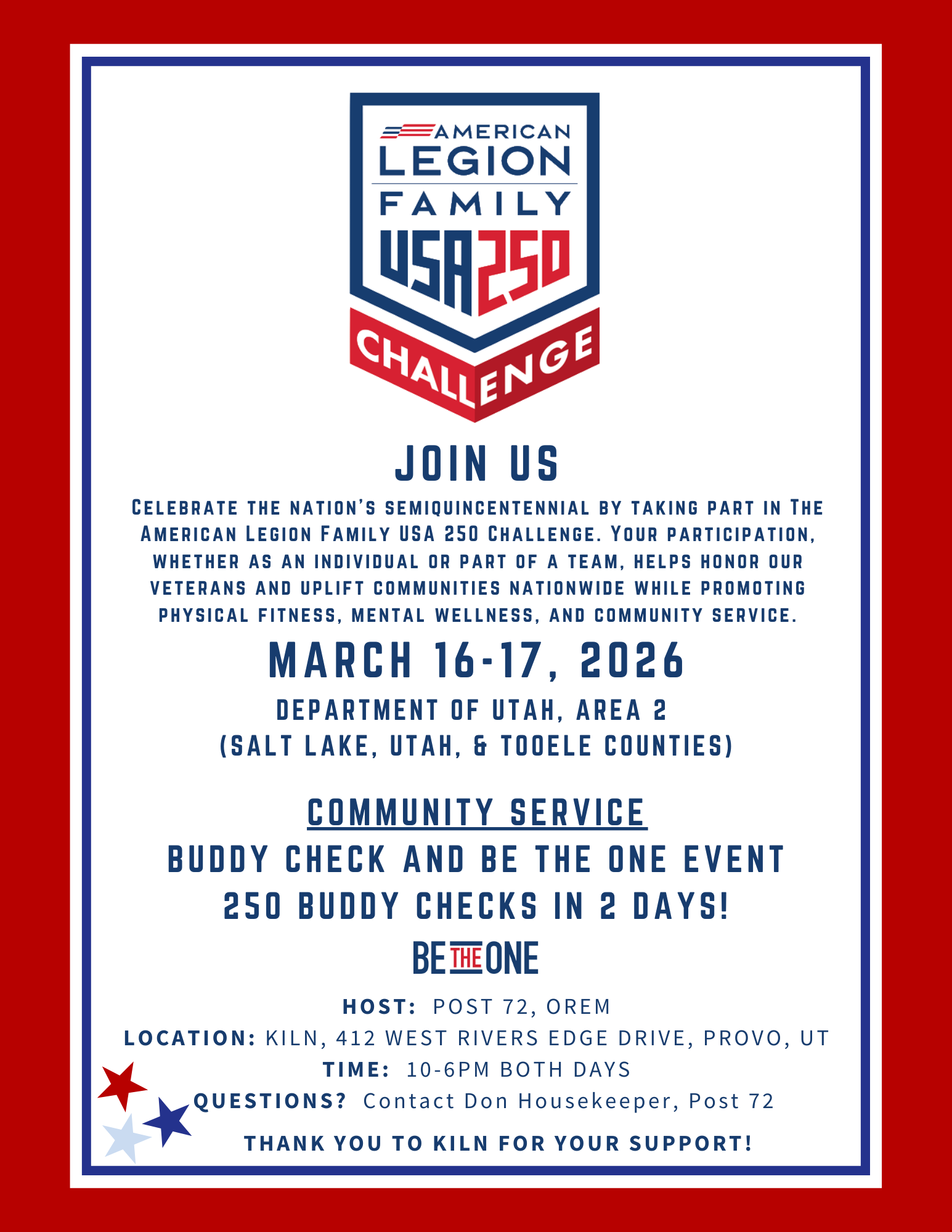 250 Buddy Checks – Sponsored by The American Legion, Department of Utah